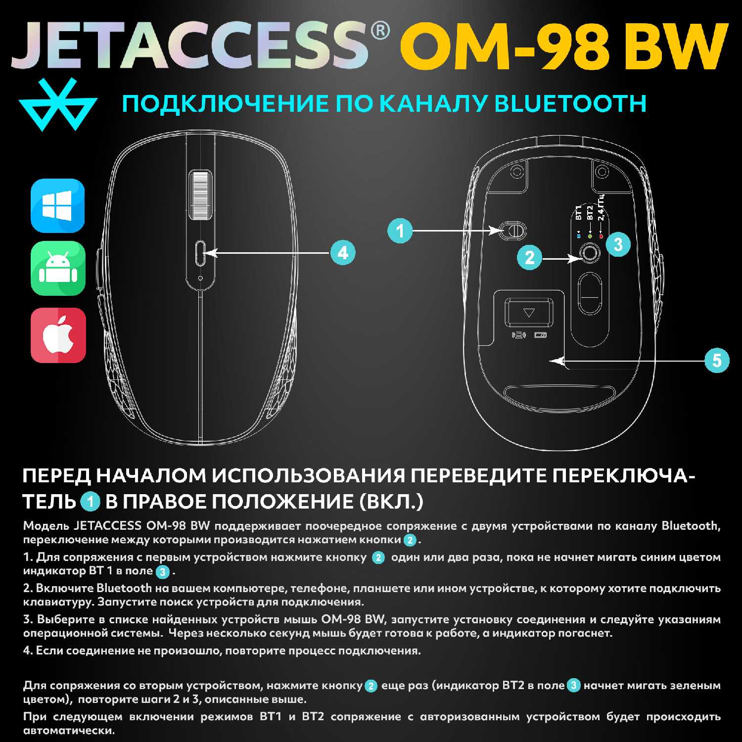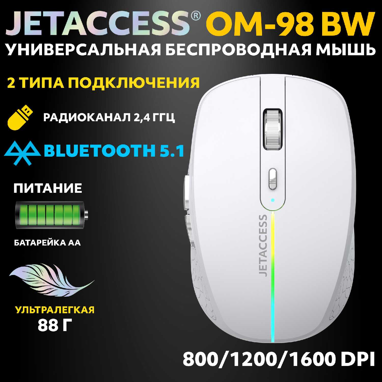 Отзывы о Мышь PANTEON JETACCESS OM-98 BW [1600dpi, 3 режима]