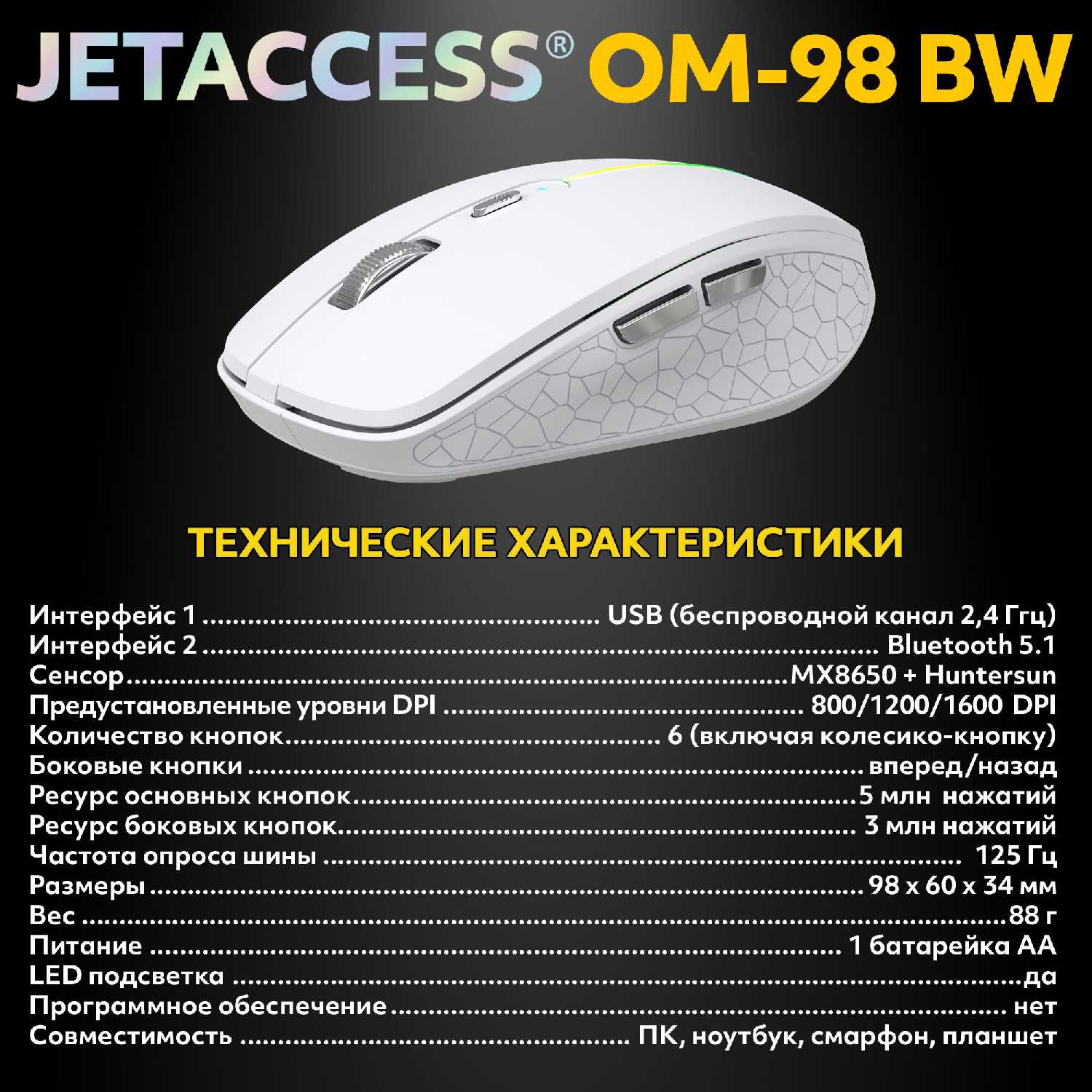Характеристи PANTEON JETACCESS OM-98 BW