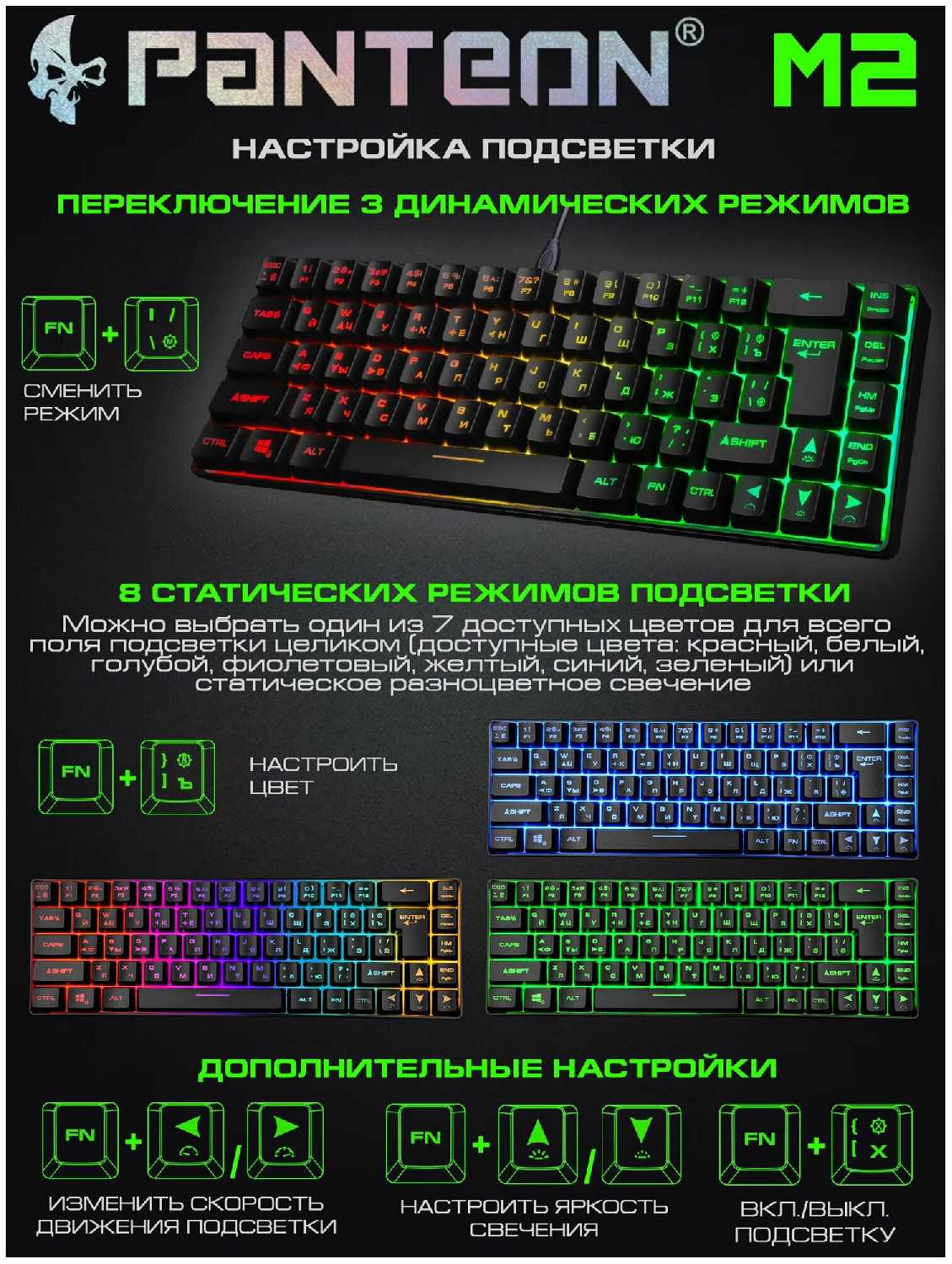 - Возможность переключения режимов без ПО, используя FN-комбинации.