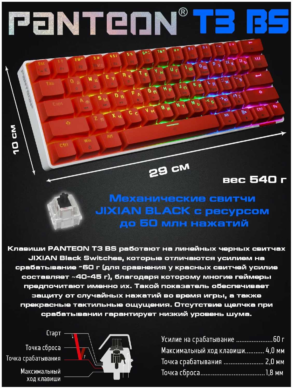 - Линейные свитчи с усилием срабатывания 45 г обеспечивают плавный ход без тактильного щелчка.
