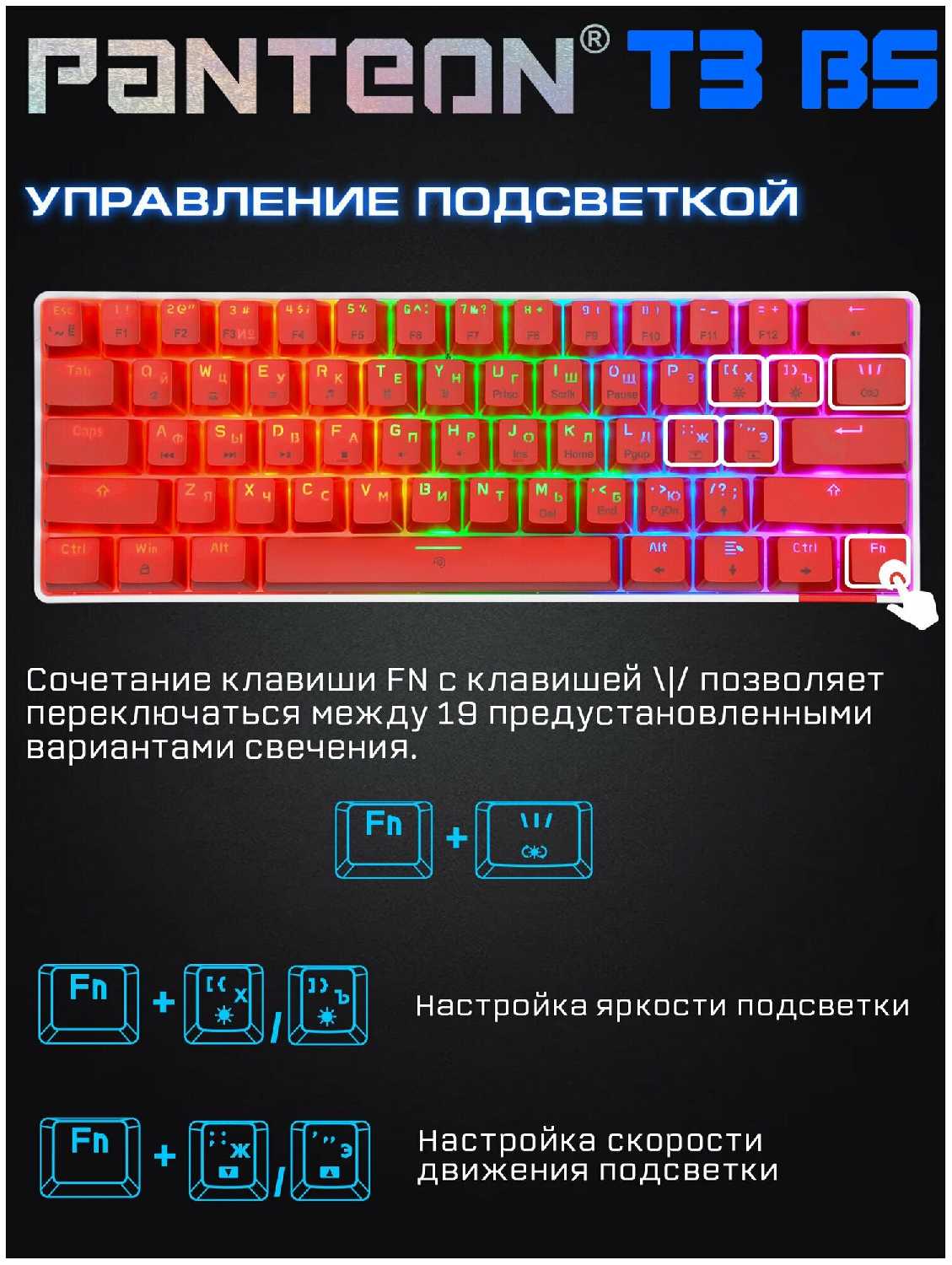 - Подсветка LED RAINBOW (Цвет Клавиш Не Изменить)