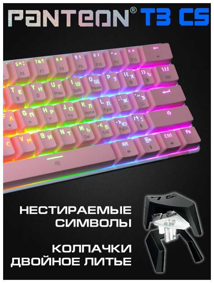 2) Кейкапы. Кейкапы в таком стиле я видел только в урезанных клавиатурах. (К сожалению, в версии Т9 уже нет такого шрифта.) Они легко снимаются и не стираются.