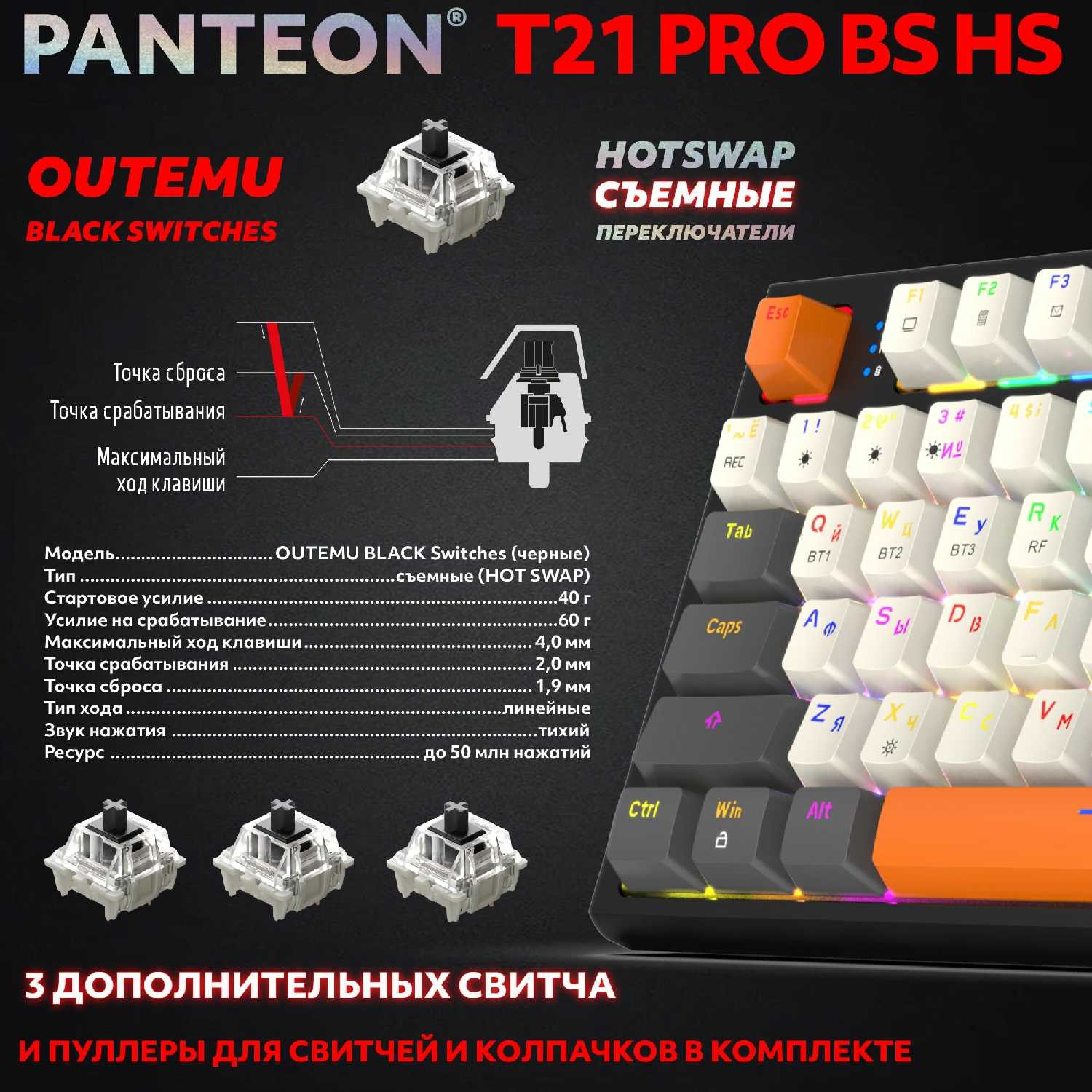 Я был приятно удивлен, когда обнаружил, что в комплекте положили запасные свичи и щипчики для их замены. Это действительно приятный бонус, который показывает заботу производителя о своих пользователях.