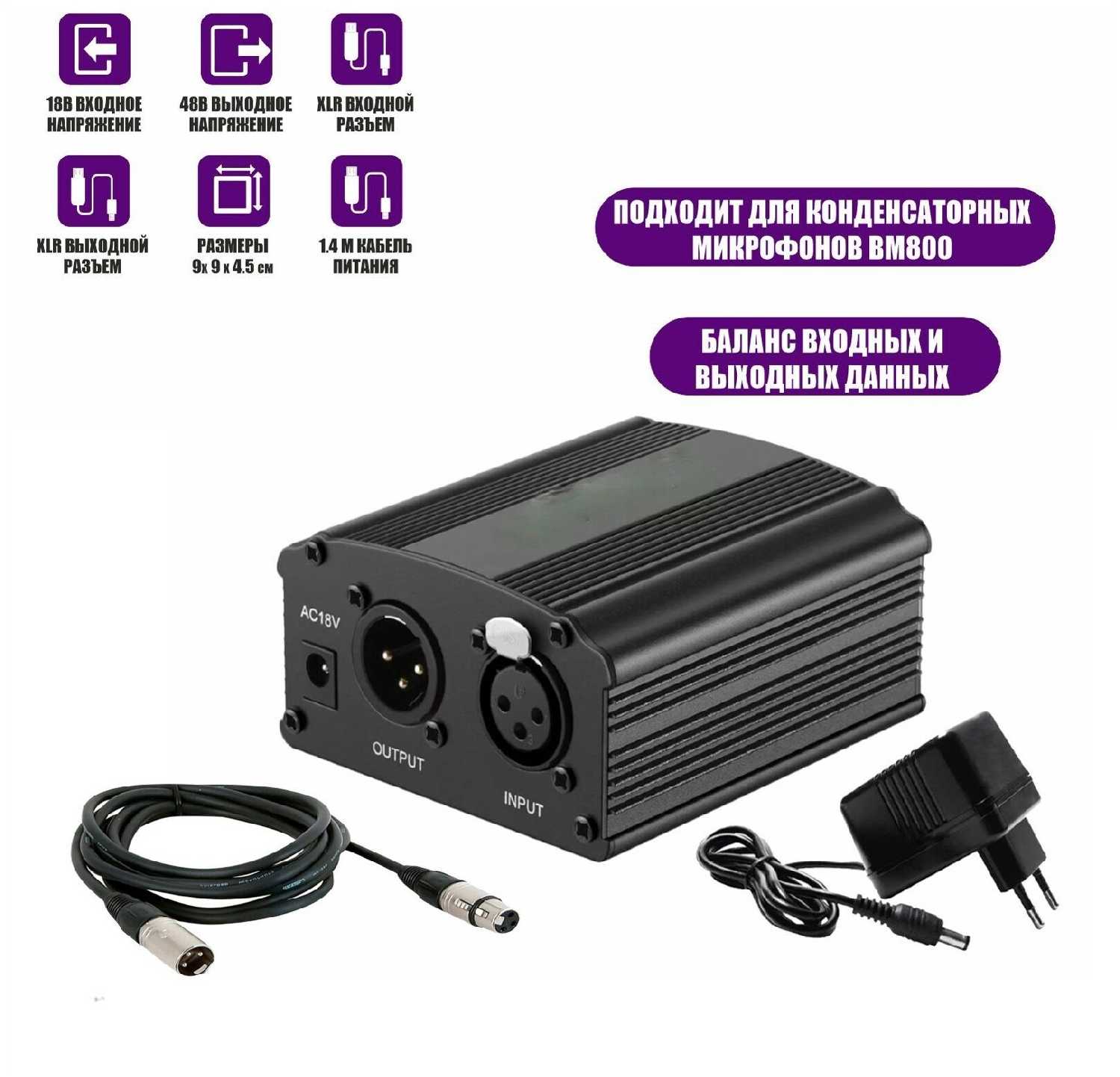 | Дополнительная информация : | Важно! Работает только с микрофонами подключаемыми XLR кабелями. Важно! Фантомное питание обеспечивает напряжение 48 В на конденсаторный микрофон, но оно не улучшает качество звука и не улучшает громкость микрофона. Внимание!Фантомное питание необходимо конденсаторным микрофонам, без него они не будут работать. Для динамических микрофонов необходимости в фантомном питании нет. Внимание! Производитель оставляет за собой право изменять характеристики товара, его внешний вид и комплект поставки без предварительного уведомления продавца. |