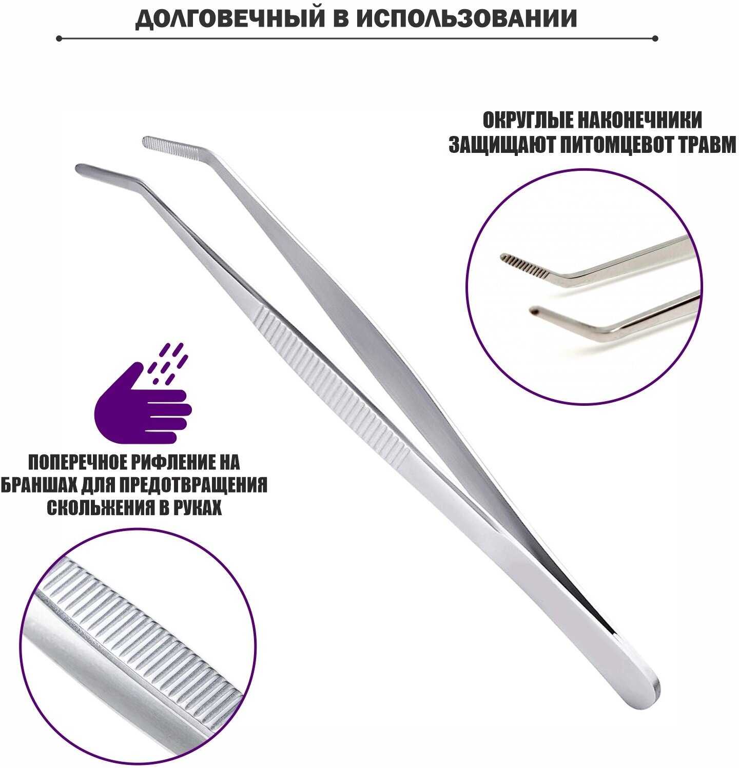 Дополнительная информация : | Использование пинцета также защищает руки человека от возможных укусов опасных экзотических животных. С помощью него вы легко сможете навести порядок в террариуме, поправить декор и убрать мелкие объекты. |