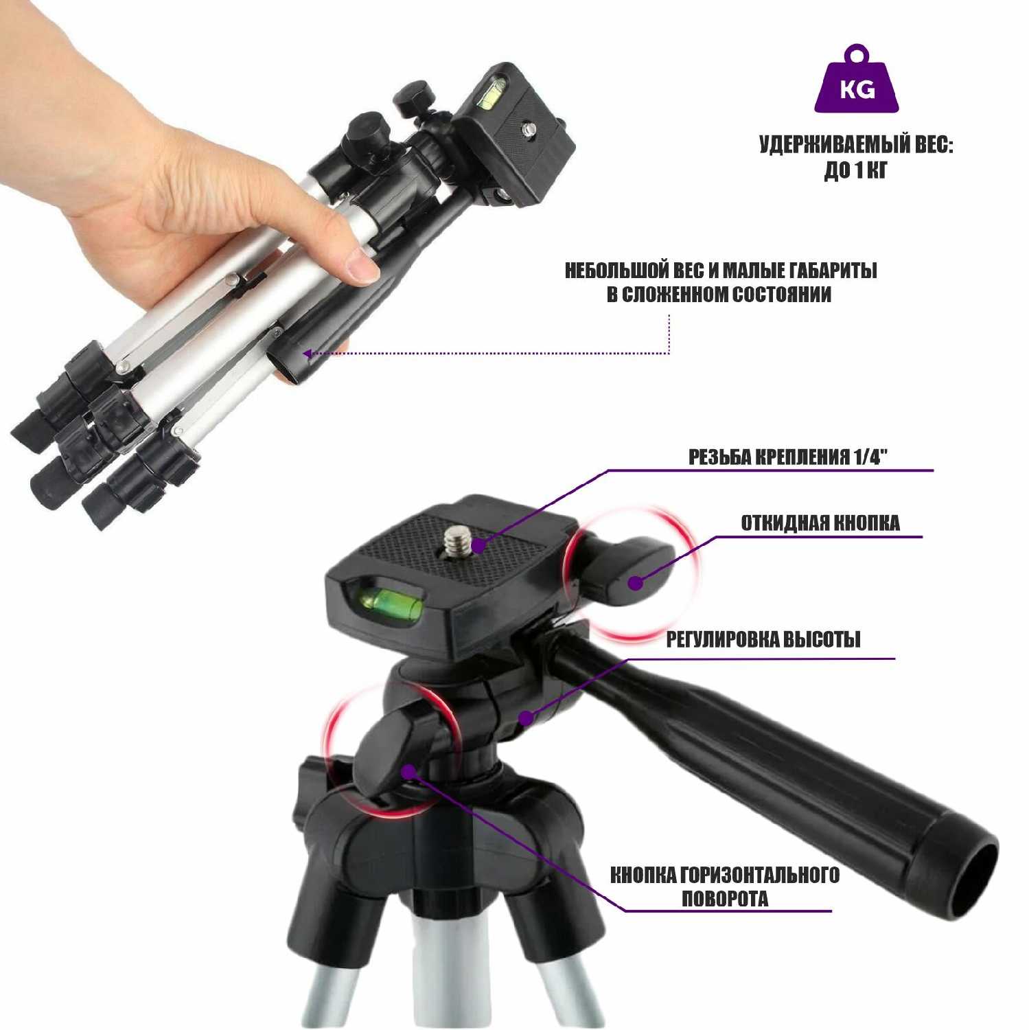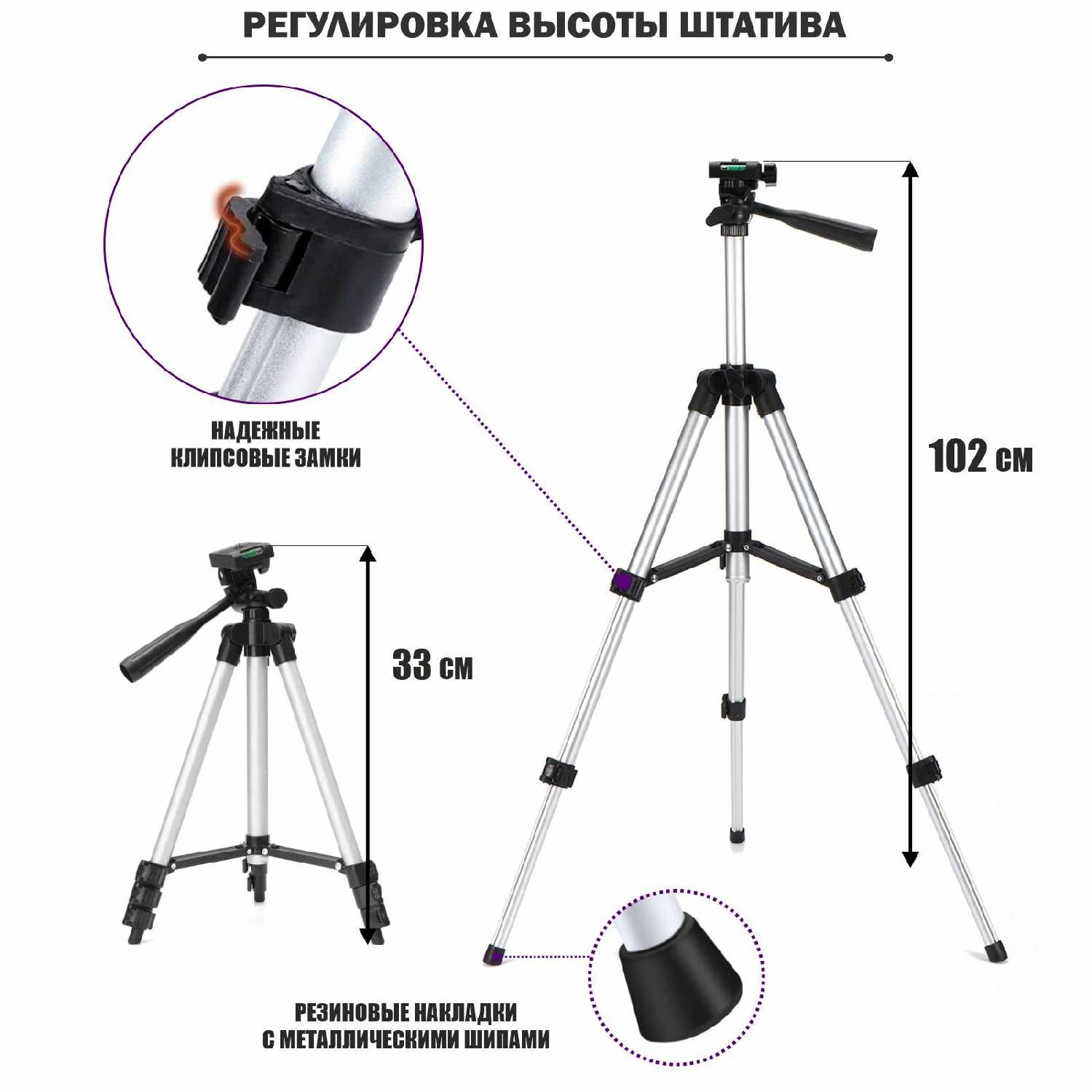 | Дополнительная информация : | Штатив регулируется по высоте, возможен поворот на 360 градусов |