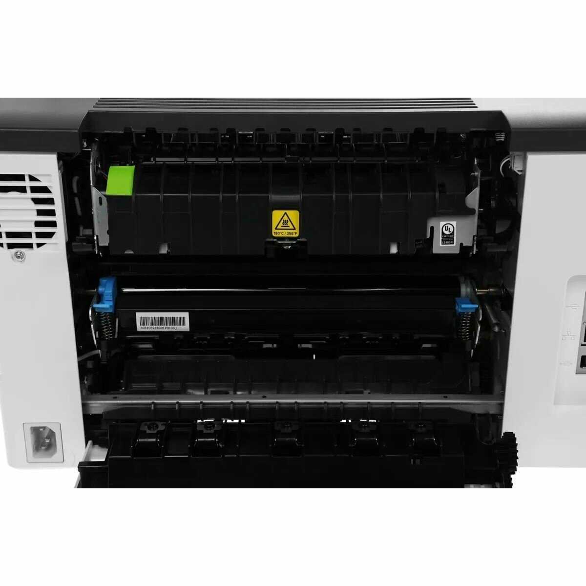 Есть брак печати,когда печатает серым цветом,полосы белые с боку листа.