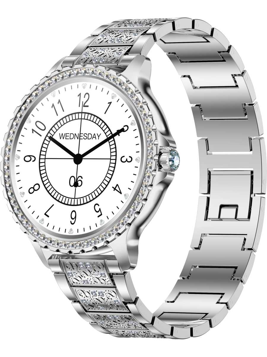 - Часы имеют элегантный внешний вид с блестящими камешками, что делает их презентабельными на руке и подходящими для повседневного ношения.
