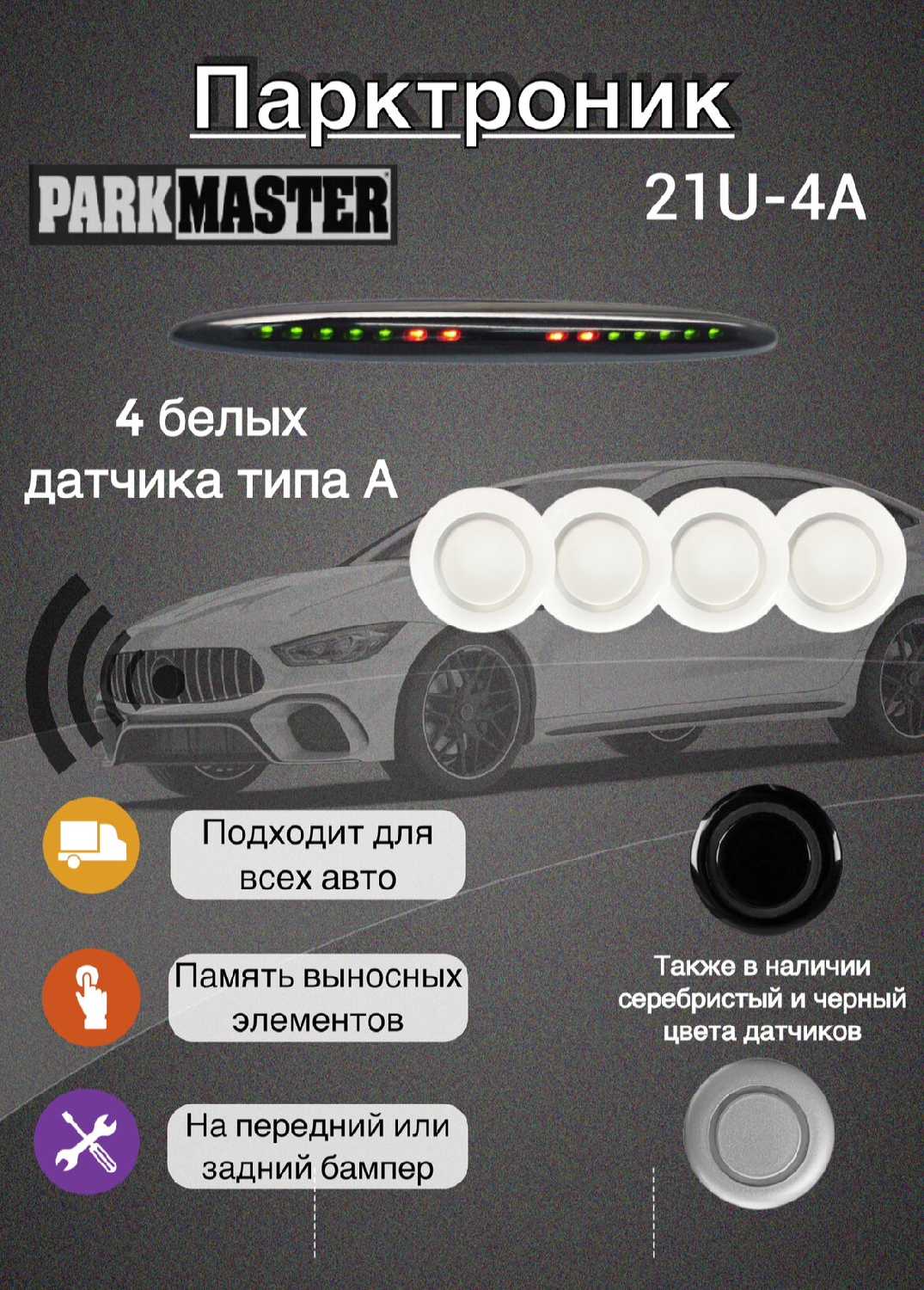 | Дополнительная информация : | Парктроник ParkMaster 21U-4-A-b с 4 датчиками – это надежное решение для автомобилистов, стремящихся обеспечить безопасность во время парковки. Этот универсальный парктроник обладает врезным типом крепления, что делает его удобным для установки на любой автомобиль. |