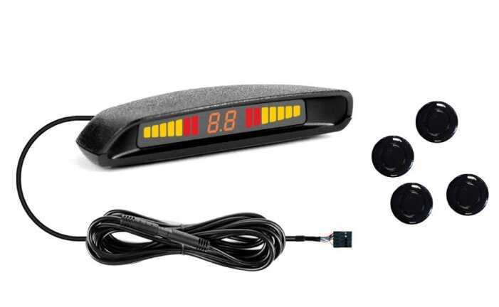 - + Отличный парктроник. Небольшого размера, не занимает много места. Работает без нареканий, расстояние показывает правильно. Писк не громкий, но и не тихий, как раз то, что нужно. Плюс цветная шкала с расстоянием, удобно. Парктроники небольшого черного цвета, снаружи практически незаметно. Ложных срабатываний от снега, дождя или грязи не было