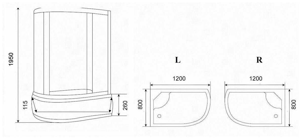 - форма поддона: асимметричная