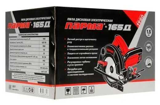 Характеристи Парма Дисковая пила 165Д