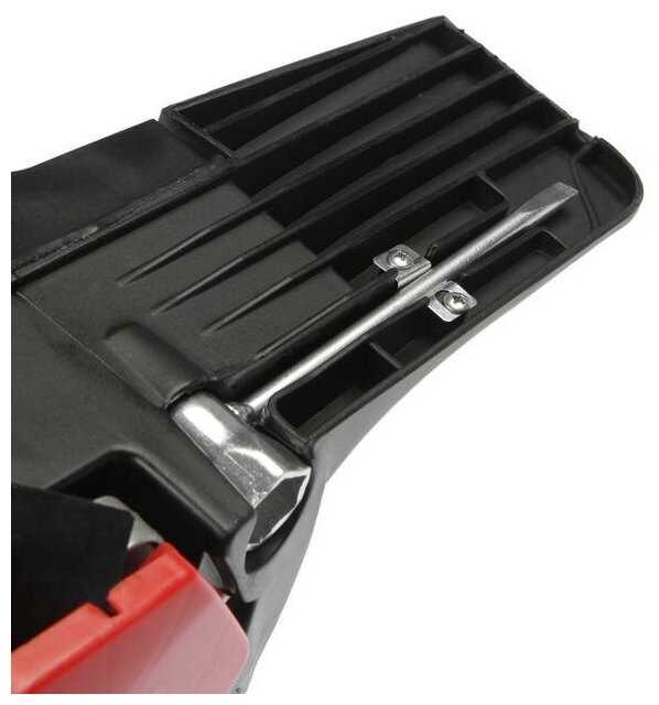 Пластик аккуратный, но не премиум — неровный и дешёвый у некоторых экземпляров. Сборка достойная, но встречаются дефекты: сорванные саморезы ручки, отсутствующая гайка на шине. Крепкий пластик хвалят за удобство ручки. Требует осмотра на заводские огрехи перед использованием. В целом, приемлемо для бытового инструмента. -