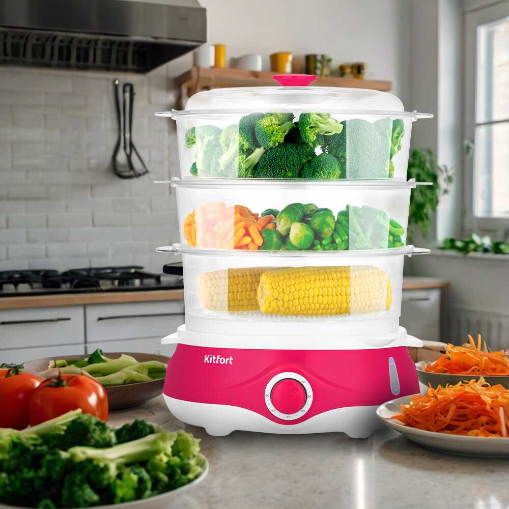 - Пароварка Kitfort оказалась очень удобной в использовании — интуитивно понятное управление и достаточно вместительные контейнеры позволяют готовить разнообразные блюда без лишни...