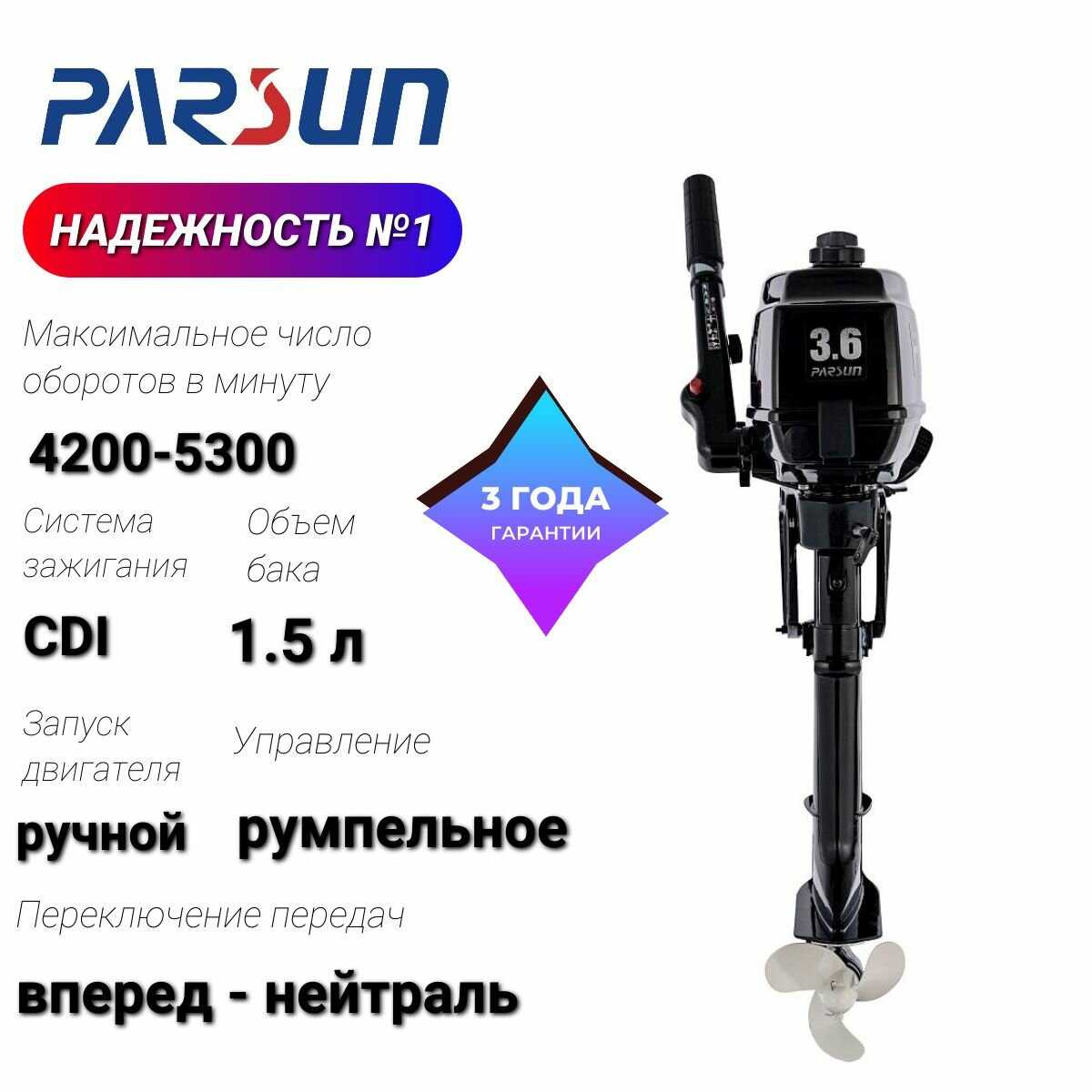 Отзывы о Лодочный мотор Parsun TC3.6BMS