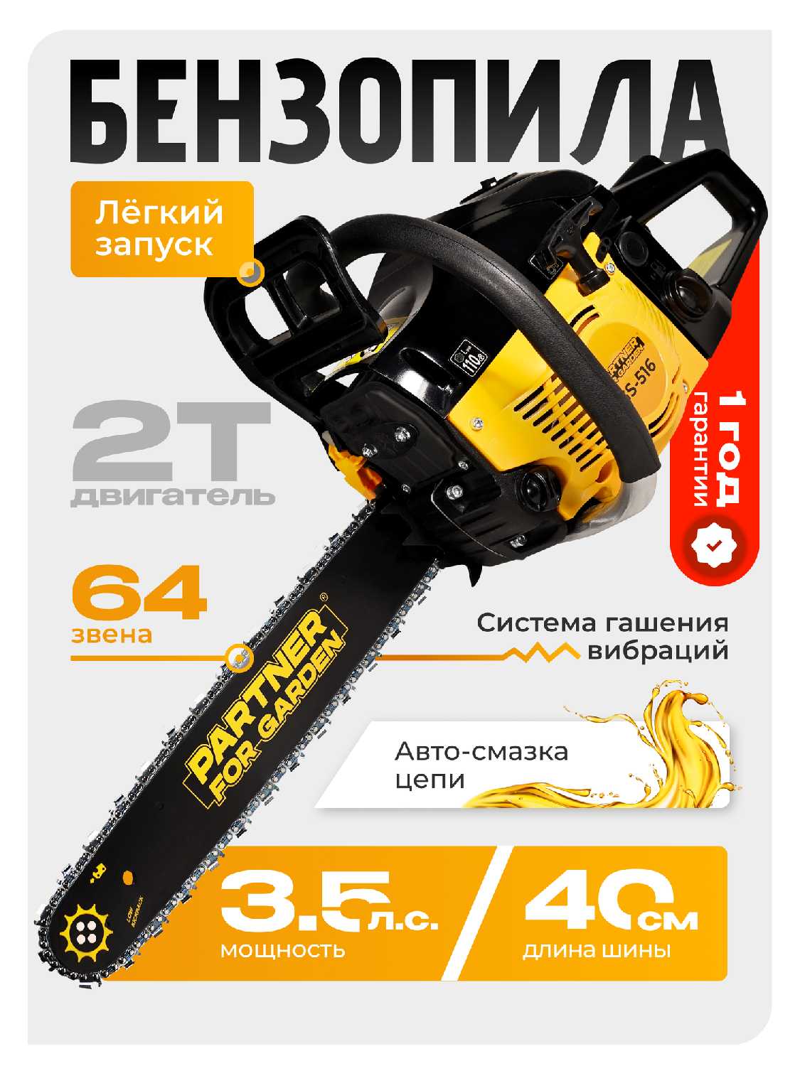 Отзывы о Бензопила Partner for Garden GS-516P [3,5 л.с.]