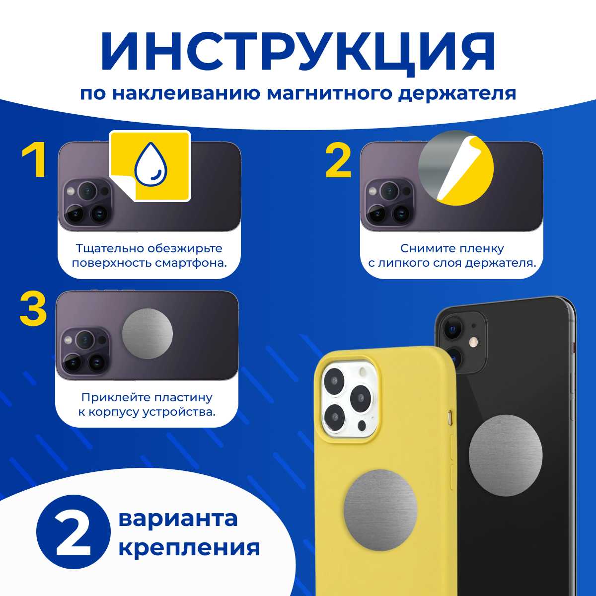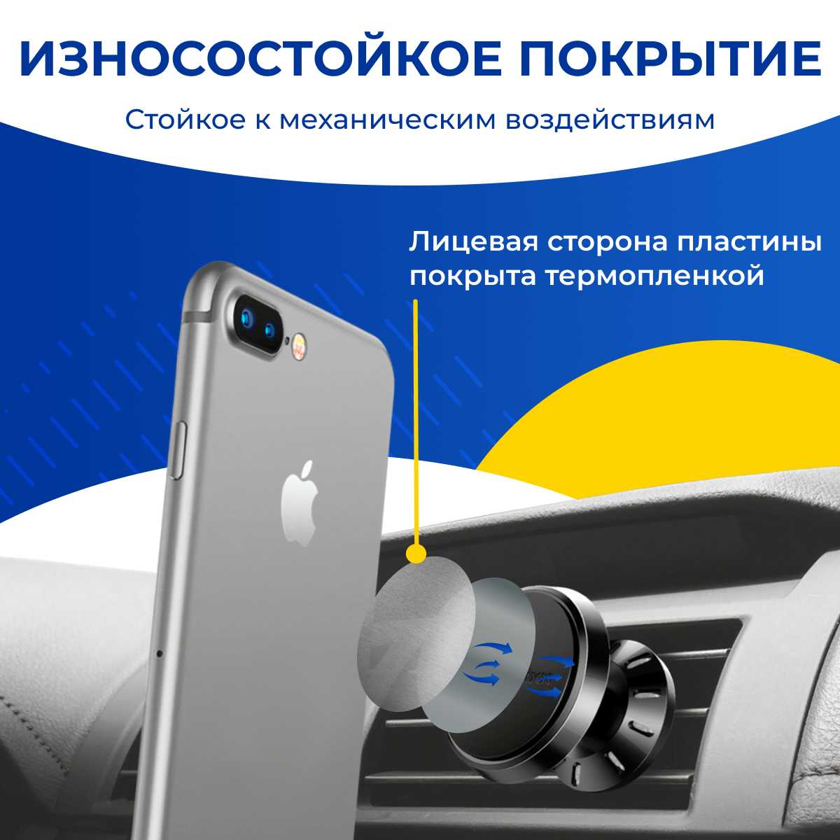 | Дополнительная информация : | клейкая поверхность облегчает установку телефона, металлические пластины для iPhone Xiaomi Samsung Huawei Honor, крепление для телефона в машину. |