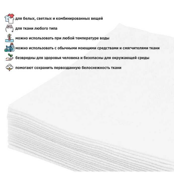 Салфетки станут незаменимым помощником для всех, кто ценит белоснежное белье и хочет надолго сохранить его первоначальный вид. Они особенно полезны семьям с детьми, где часто происходит смешанная стирка, и для тех, кто предпочитает не сортировать белье слишком тщательно. Это идеальное решение для владельцев яркого и цветного гардероба, которые хотят предотвратить выцветание. Продукт также оценят те, кто ищет профилактическое средство для поддержания свежести и яркости вещей без агрессивной химии.