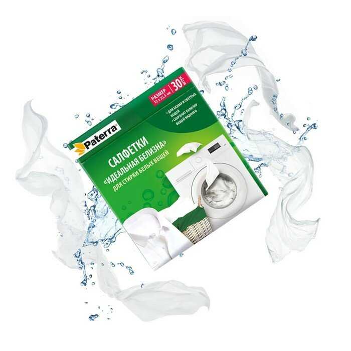 - После стирки вещи становятся белоснежными, а салфетка приобретает цвет мокрой мыши или грязно-голубой, указывая на поглощенную застиранность.