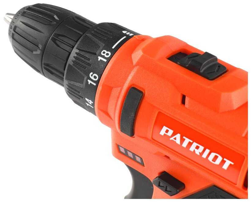 - + Дрель -шуруповерт Patriot выбрали для покупки за его функционал. В комплекте идут два аккумулятора, зарядка и насадка. Всё аккуратно упаковано в специальный кейс, очень удобно хранить после использования.Дрель- шуруповёрт достаточно мощный, удобный в работе, гарантия от производителя два года.