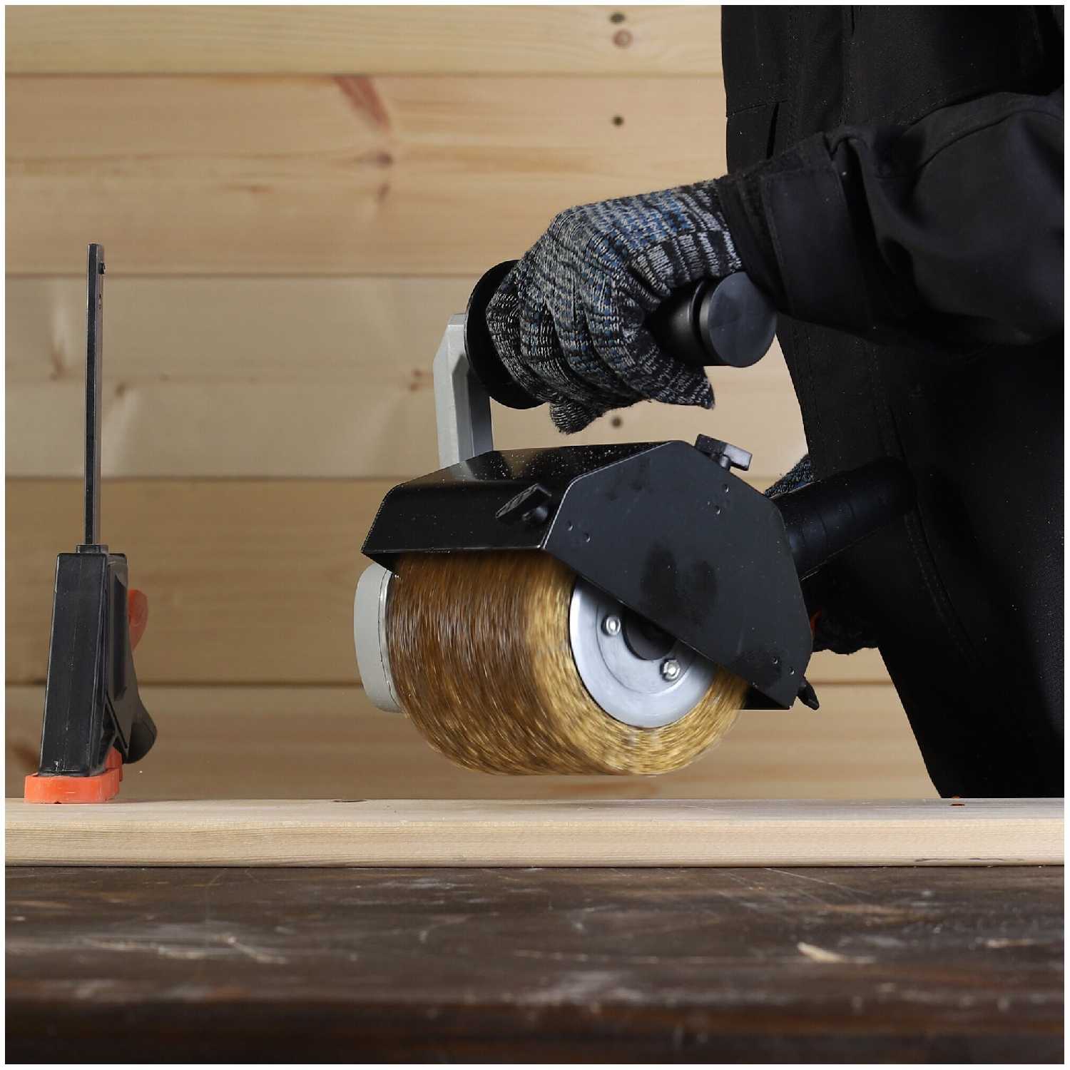 - - Родной диск в принципе не снимает древесину. Купил другой, ворсинки покороче, работает, но очень много заусенцев оставляет. Нейлоновая работает только если держать под углом и шлифовать краем щётки. Вообщем ожидания не опровдались, повезу в сервисный центр, может что не так с механизмом.