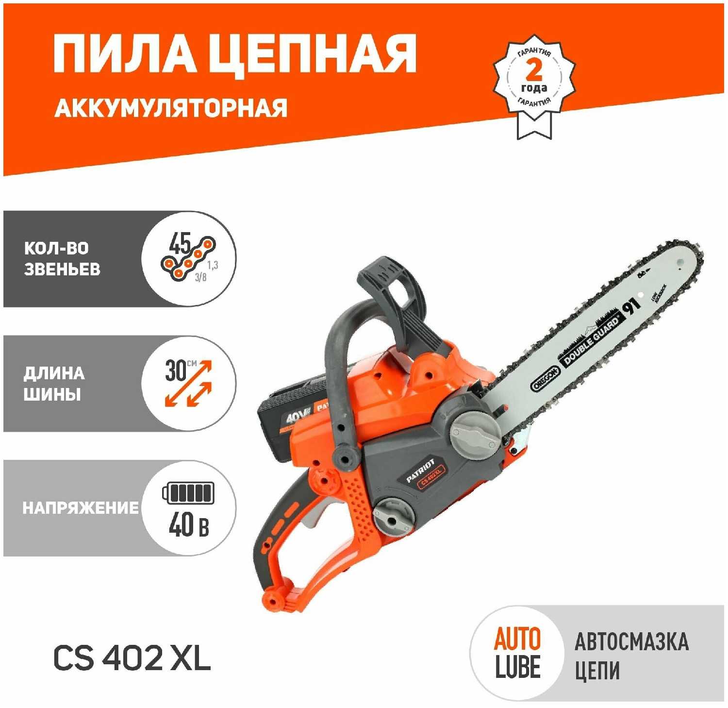 Отзывы о Пила аккумуляторная PATRIOT CS 402XL (40 В, 2.5 А·ч)