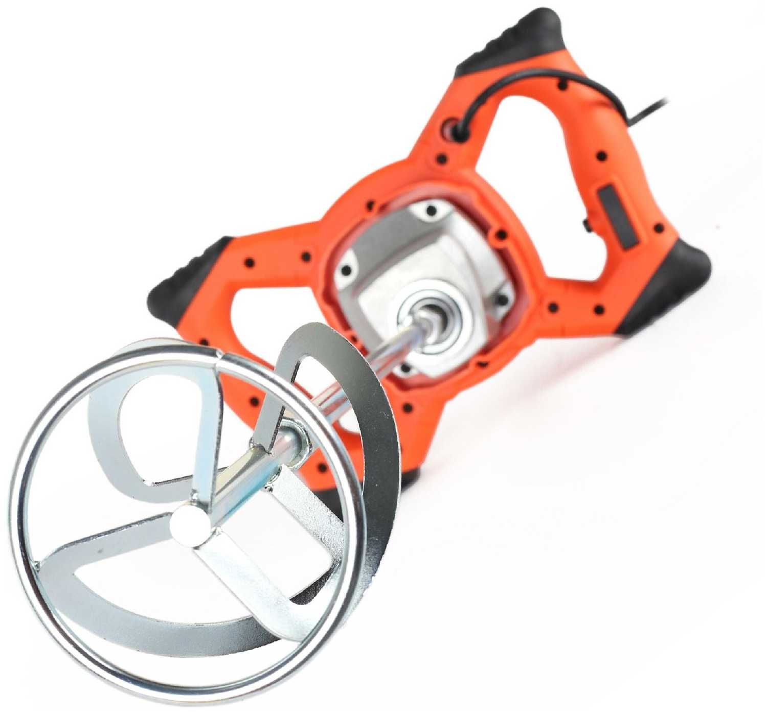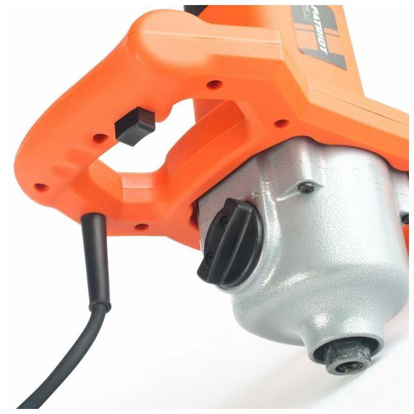 Дрель-миксер пришел в упрощенной конструкции. Механический переключатель скоростей отсутствует, только электронная регулировка скорости. (Указано в инструкции идущей с миксером). Венчик левосторонний (для легких растворов). Переключатель реверса отсутствует в конструкции изначально.