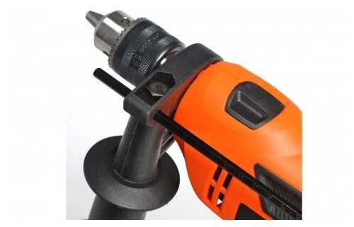 Особенности конструкции : | блокировка кнопки включения, дополнительная рукоятка, ограничитель глубины сверления |