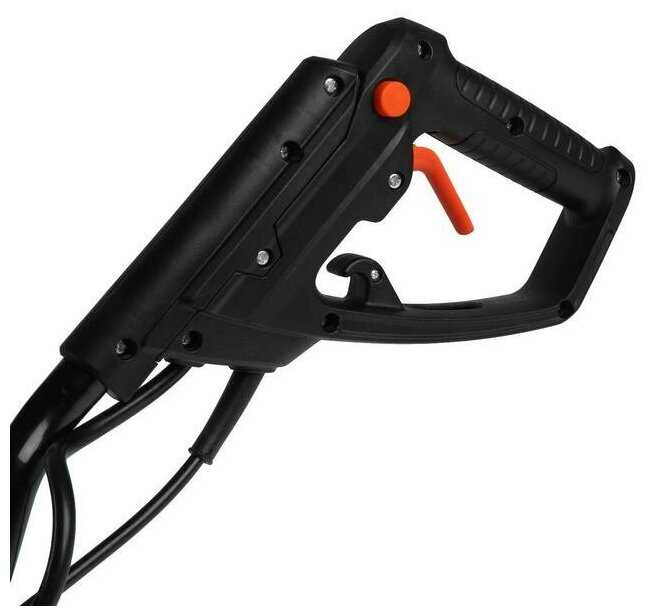 Длинный кабель (рекомендуется удлинитель от 30 м) следует накидывать на плечо или использовать поясную катушку, чтобы избежать запутывания. Некоторые пользователи фиксируют провод на рукоятке пластиковыми хомутами, оставляя запас для маневров. -