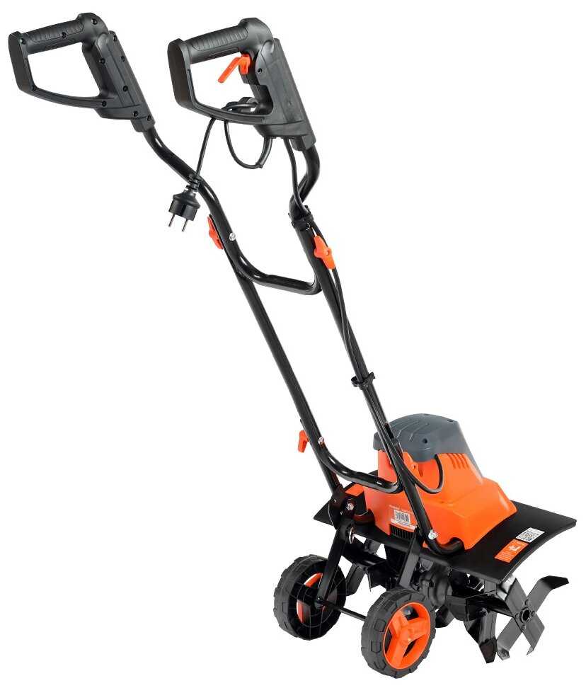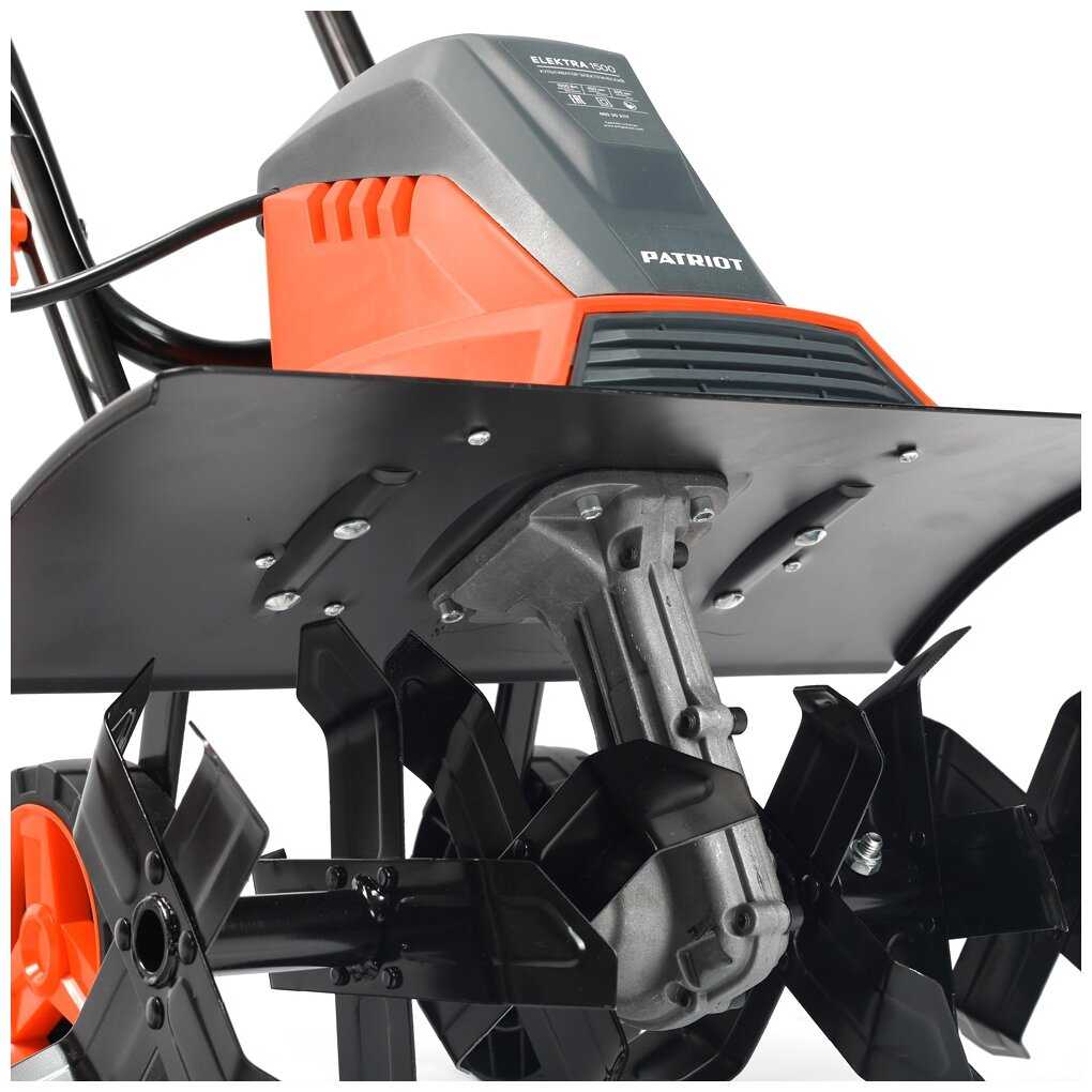 Комплектация вызывает больше всего нареканий: в коробке часто отсутствуют болты для ручки, шплинты для колёс, хомуты для кабеля. Некоторые покупатели получили уже собранные культиваторы с рукоятками от других моделей (например, Patriot Elektra 1000), что нарушает эргономику. Фрезы поставляются с необработанными кромками — их заточка обязательна для эффективной работы. Декоративные колпаки на колёсах и лёгкая сборка (4 болта) — плюсы, но инструкция крайне скудна: в ней нет данных по обслуживанию редуктора, регулировке глубины вспашки или технике безопасности. Упаковка не защищает агрегат при транспортировке — возможны повреждения корпуса. Отдельные партии имеют проблемы с электропроводкой: в одном из отзывов упоминается замыкание в коллекторе двигателя сразу после покупки. Пластиковые элементы (щиток, крышка редуктора) хрупкие, но заменяемы при аккуратной эксплуатации.