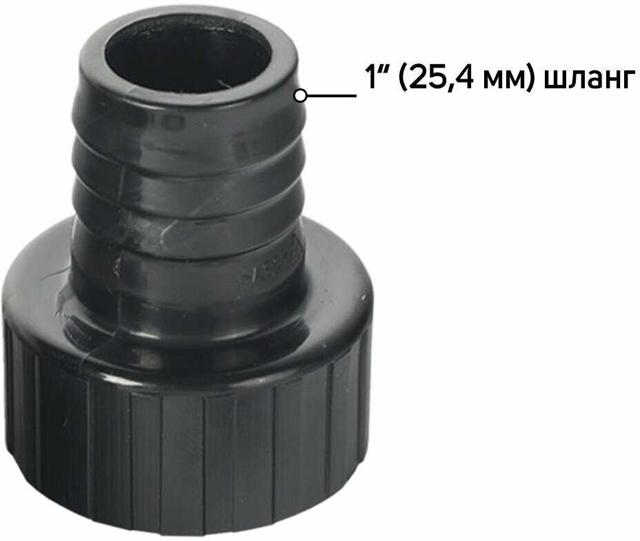 Обязательно использование шлангов диаметром от 25 мм (1 дюйм) — меньший диаметр может привести к перегреву и поломке двигателя. Верхнее расположение патрубка упрощает подключение, а переходники с резьбы 1" на быстросъём (24 мм) позволяют адаптировать его для стандартных поливочных систем. Докупать штуцер на 34 мм не требуется. -