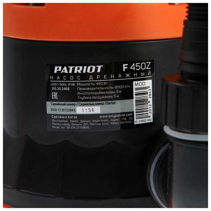Отзывы о Дренажный насос для чистой воды PATRIOT F 450Z (450 Вт)