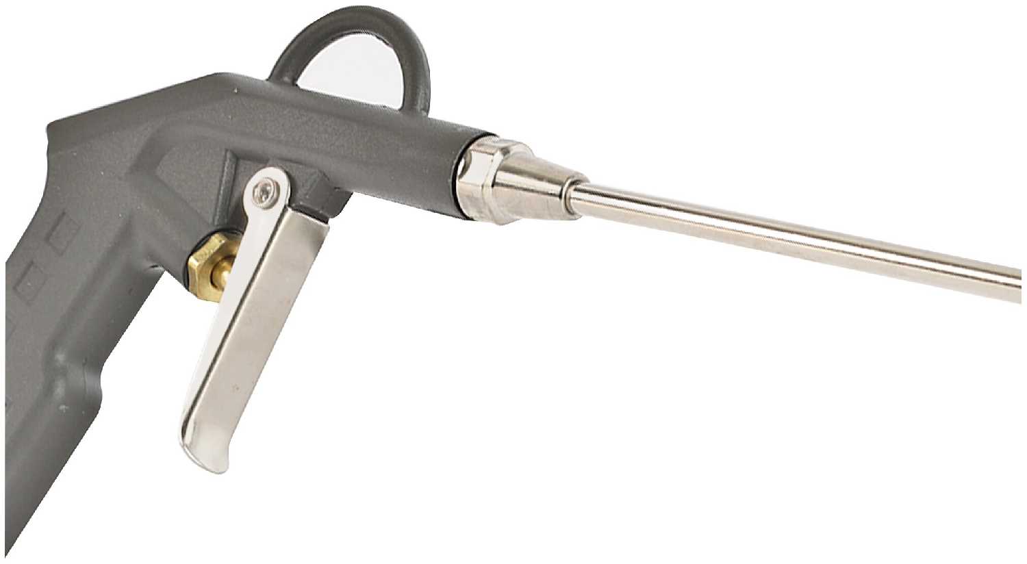 - Удлинённая трубка (до 25 см) обеспечивает доступ к узким зонам (радиаторы авто, компьютерные комплектующие).