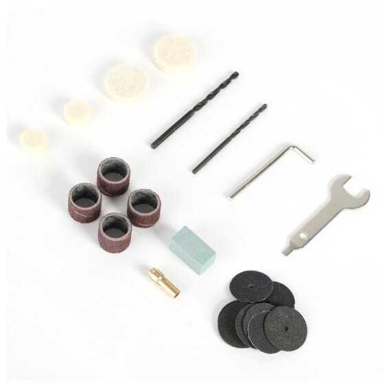 | Комплектация : | Гравер, Гибкий вал, Цанга 2.3 мм, Точильный камень 3.2 мм - 10 шт., Фиксатор цанги, Ключ, Держатель 3.2 мм - 2 шт., Насадка для шлиф. бумаги ленты 3.2 мм, Шлифовальная лента - 4 шт., Шлифовальная бумага - 4 шт., Отрезной диск - 8 шт., Войлочный полировальный круг - 4 шт., Точильный камень, Сверло 2.3 мм, Сверло 3.2 мм, Алмазная шарошка 3.2 мм - 2 шт., Кейс. |