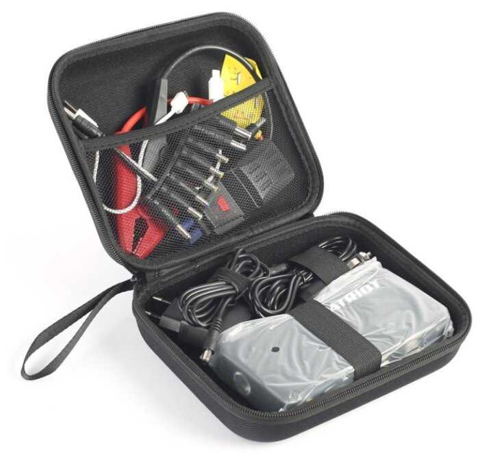 | Подробная комплектация : | Сетевой адаптер, Адаптер зарядки от прикуривателя автомобиля, Силовые стартовые провода + зажимы, Адаптер для телефонов, Кабель и разъемы для ноутбуков, Сумка для хранения и транспортировки, Инструкция по эксплуатации |