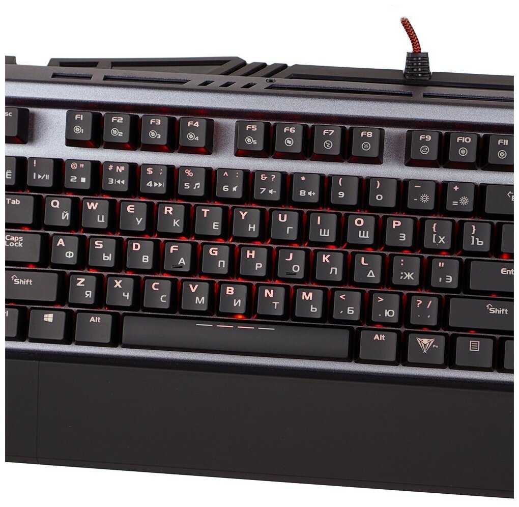 - + отличная клавиатура за свои тогдашние.4 тысячи. выступ перед клавиатурой несъёмный, штука очень удобная , снижает нагрузку на руки. много режимов подсветки , а она сама - красная , а не бесячая РГБ. также отмечу, что клавиатура более чем ударопрочная. выдержала не один нападок от меня в порыве гнева и у нее даже не сломались раскладывающиеся подставки. коричневые свичи очень приятные на нажатие