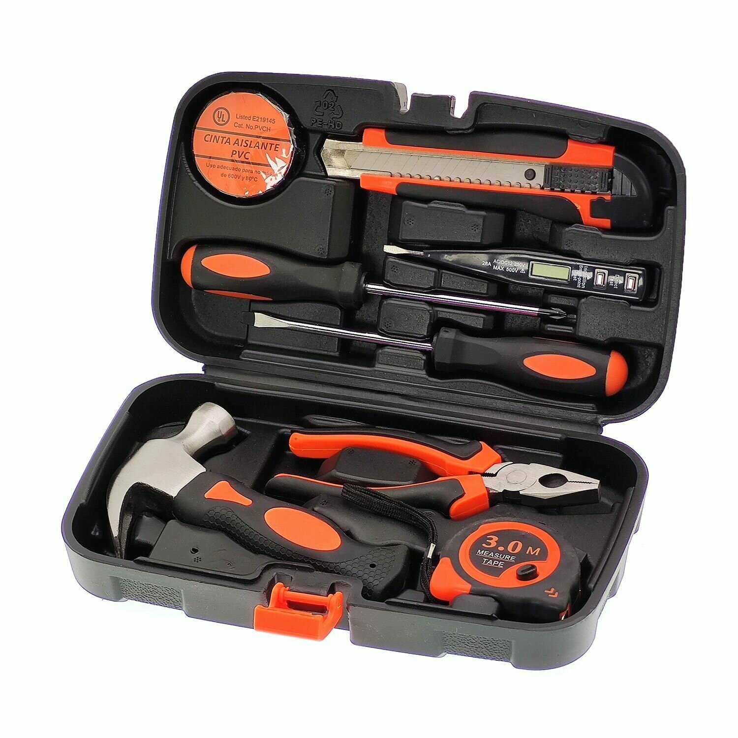 - + очень удобный набор, молоток немного коротковат, но зато массивный, хорошие плоскогубцы, отвёртки, нож для линолеума, всё это в хорошем и небольшом кейсе