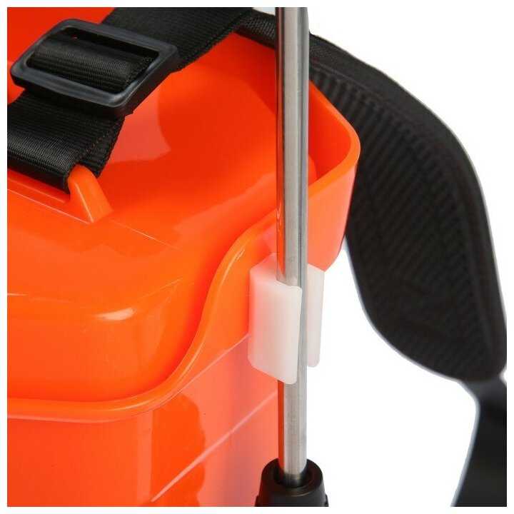 2. Тяжело одевать. При полной заливке неудобно надеть прямоугольную плоскость бака. Приходилось по началу одевать его в положении сидя. Но после 10 раз как-то приналовчился закидывать, главное следите за лямками чтобы не вскочили. Пластиковая прослойка - крайне нужная вещь!!! Летом работая в футболке, и при залитой холодной воде в баке, с учетом его веса, ощущаешь спиной. Прослойка помогает - одевать 100%