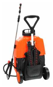 - + Удобная тележка. Не надо носить по 20 кг на плечах. Есть возможность регулировать ширину оси колес. Большой бак 16л позволяет избежать частых дозаправок. Мощный напор. Листва от напора заворачивается и листики полностью со всех сторон обрабатываются. Удобное регулирование мощности. Автоматически включается или выключается при нажатии/отпускании на ручку штанги.
