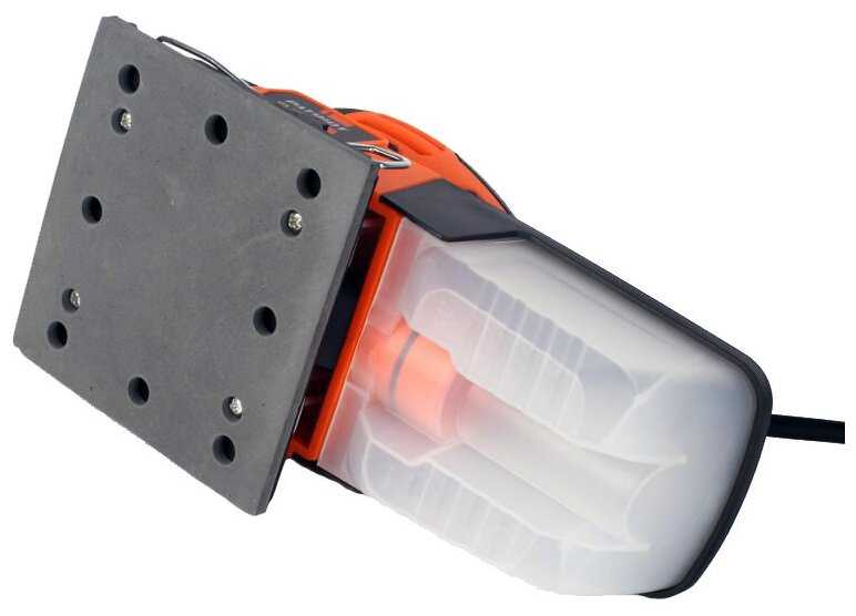 Свою работу выполняет на 100%. Есть нюансы использования: металлические зажимы (которыми цепляется шкурка) при слишком близком прилегании к перпендикулярно лежащей поверхности могут ее задевать, оставляя след. По идее, не критично, так как все-равно обрабатывается поверхность почти в упор. Угол без проблем можно, скажем, на лестнице, обработать.