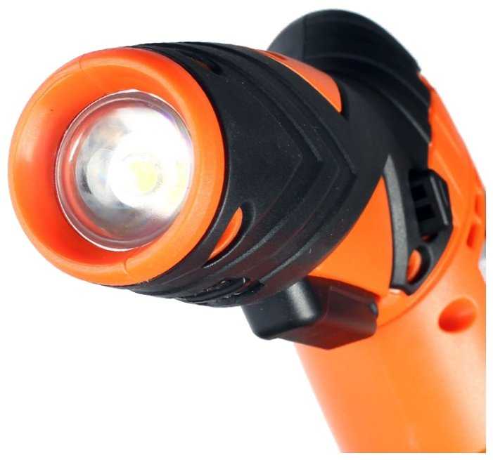 - + Удобный хват ручки, фиксатор положения рукоятки, подсветка рабочей зоны и фонарик, индикатор заряда. В других отзывах писали о проблемах с усилием трещотки - не заметил таковой: трещотка нормально регулирует усилие как на заворачивание, так и на отворачивание.