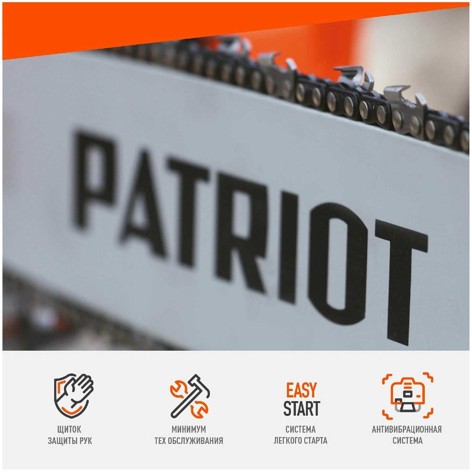 | Дополнительная информация : | 2-х тактный двигатель. увеличенный моторесурс. легкий запуск Easy Start. праймер (топливный насос). боковой натяжитель цепи. уловитель цепи. легкий доступ к воздушному фильтру и свече зажигания. прорезиненная рукоятка. тип топлива: смесь 1:40 (масло Patriot G-Motion + бензин АИ 92). |