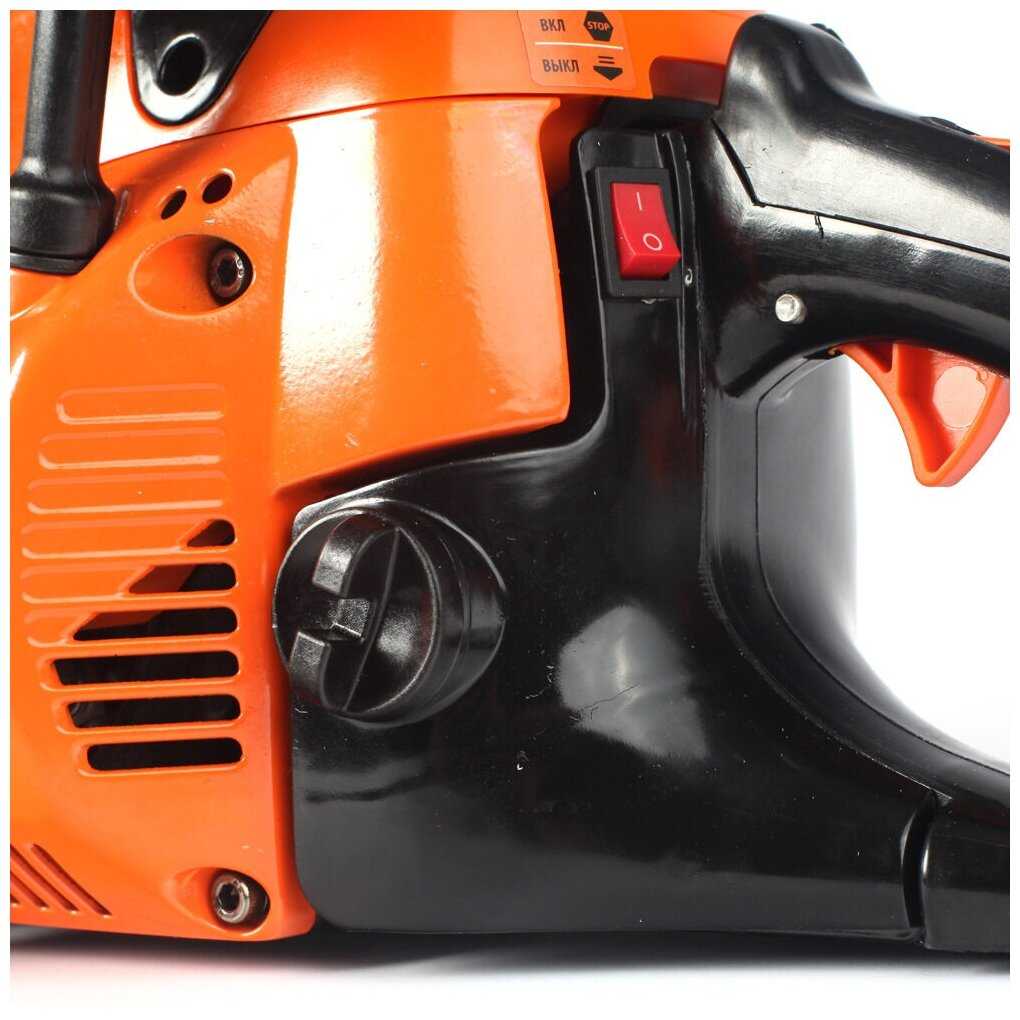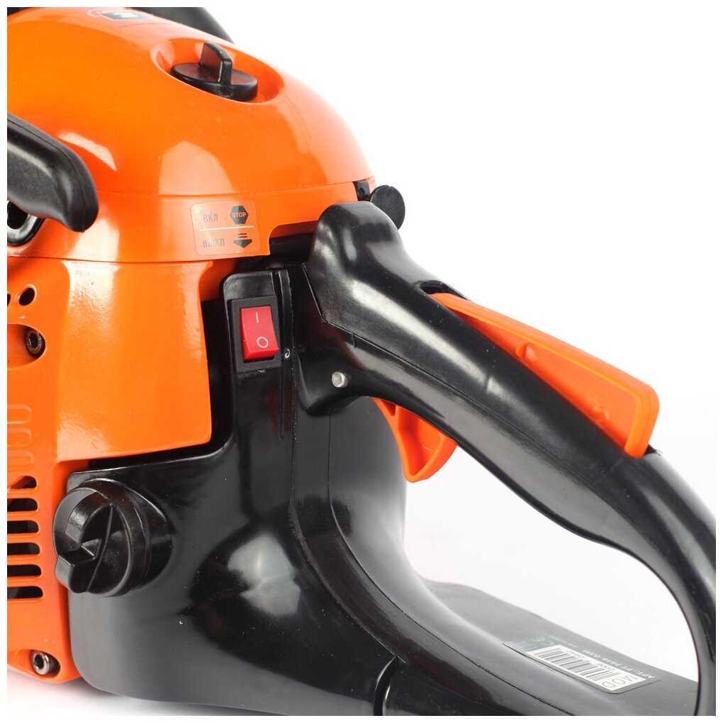 Эргономика, вибрация и удобство повседневного использования: Пила позиционируется как легкая, однако фактические замеры пользователей показывают вес около 6.5–7 кг с заправленными жидкостями, что превышает заявленные характеристики и может приводить к усталости при продолжительной работе. Система гашения вибраций реализована на базовом уровне; многие пользователи отмечают высокий уровень вибрации, передающейся на руки, что характерно для бюджетного сегмента и отличает ее от более дорогих аналогов. Эргономика органов управления получила противоречивые оценки: с одной стороны, боковое расположение винта натяжения цепи признается удобным, с другой — отмечается неудобно расположенный выключатель, который можно случайно задеть во время работы. Комплектные перчатки и очки, по мнению большинства, имеют низкое качество изготовления и не обеспечивают должной защиты и комфорта. Горловины топливного и масляного баков расположены близко друг к другу, что создает риск ошибки при заправке.