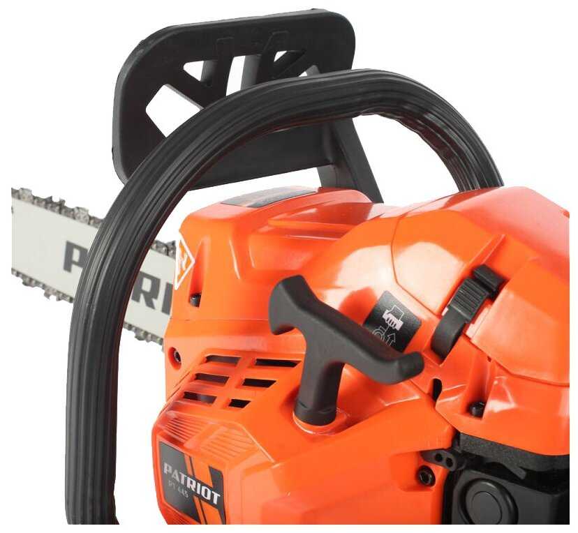 - Двигатель 45 см³ (2150 Вт) уверенно пилит деревья диаметром до 40–50 см.