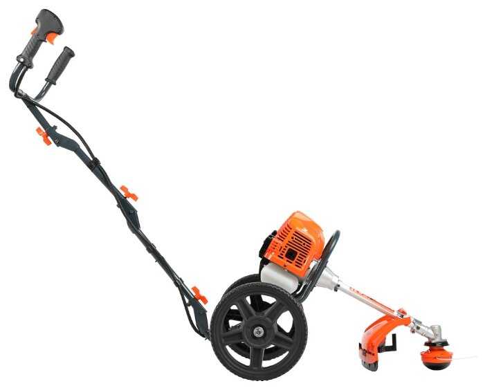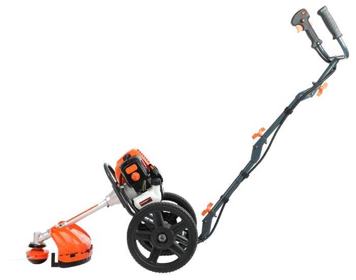 Агрегат, смесь тримера и колесной косилки. По итогу получилась очень маневренная и удобная газонокосилка. Управление очень простое. Масло и леску к ней можно найти на любом рынке. Рекомендую людям с несовсем ровным участком. По итогу, соотношение цены и качества на твердую пять.