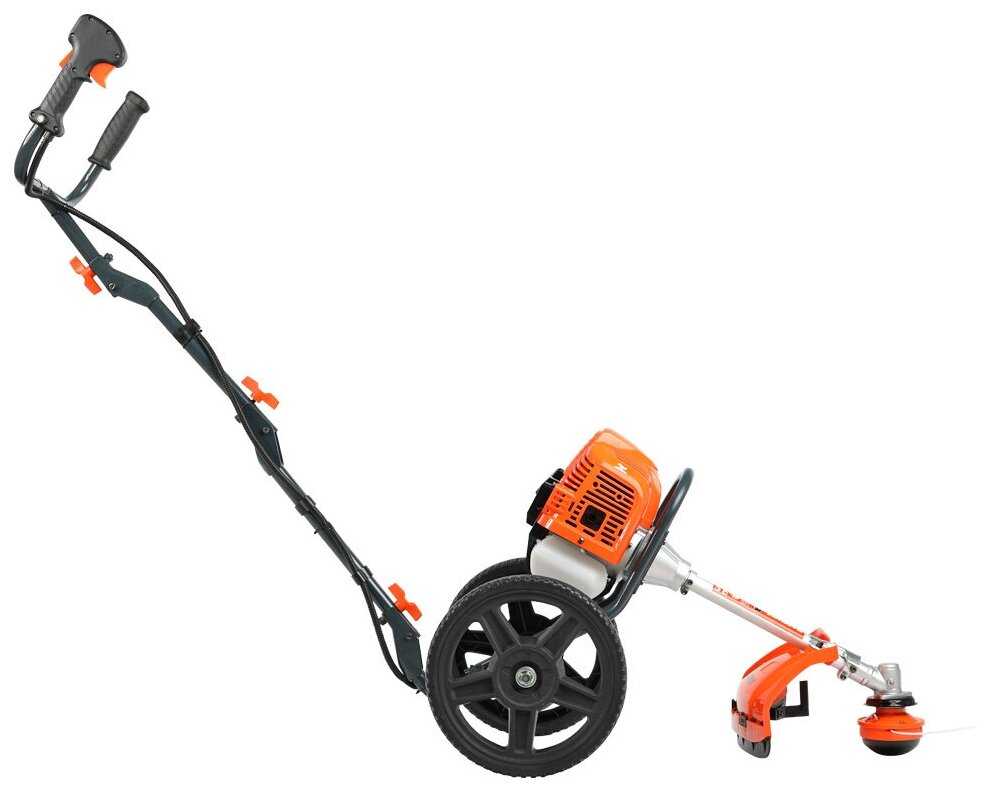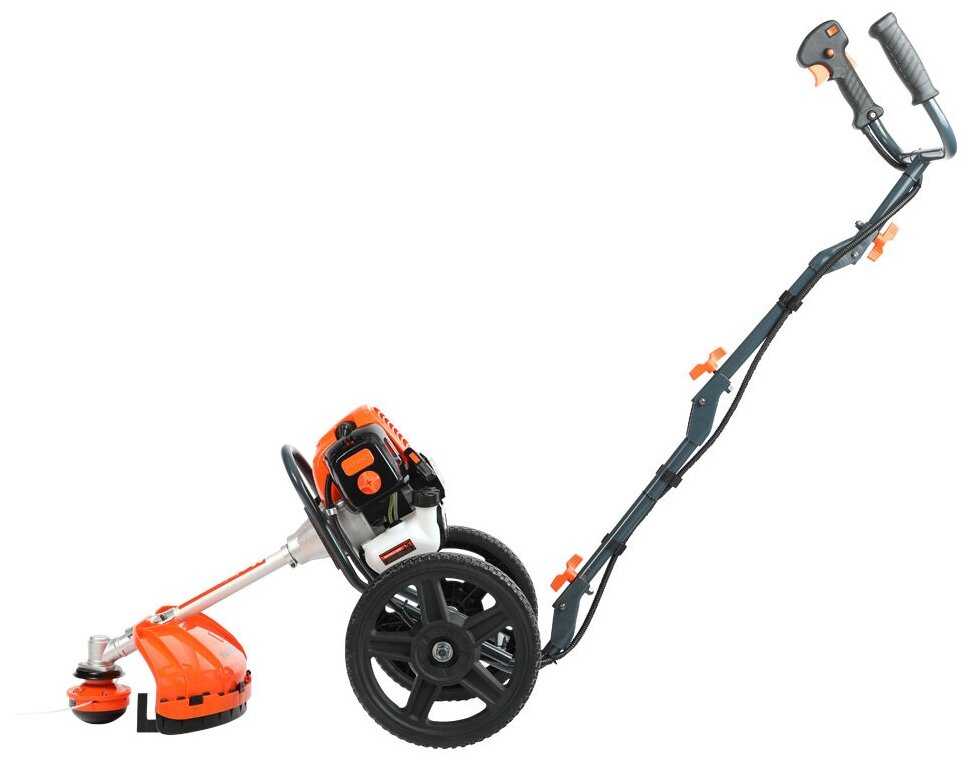 - Отсутствие вибрации на руки в отличие от подвесных триммеров, благодаря сбалансированной колесной базе и низкому центру тяжести.