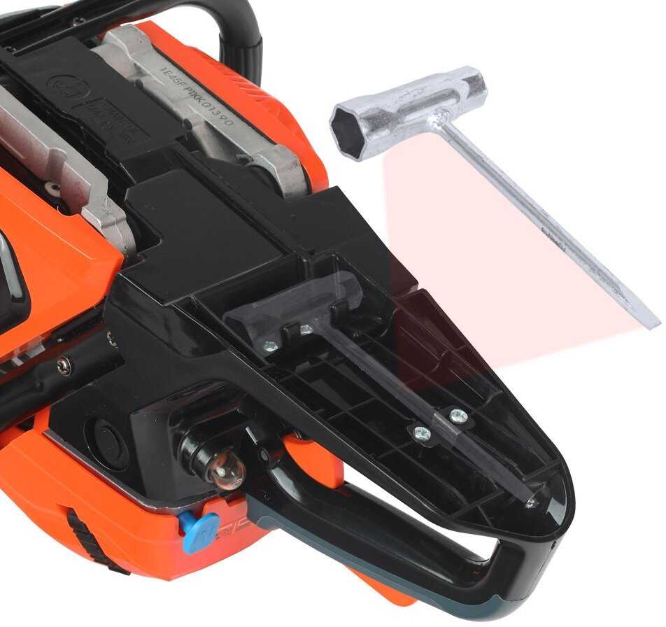 - Унифицированные ключи в комплекте (для свечи и цепи) позволяют выполнять базовое обслуживание без специнструмента.