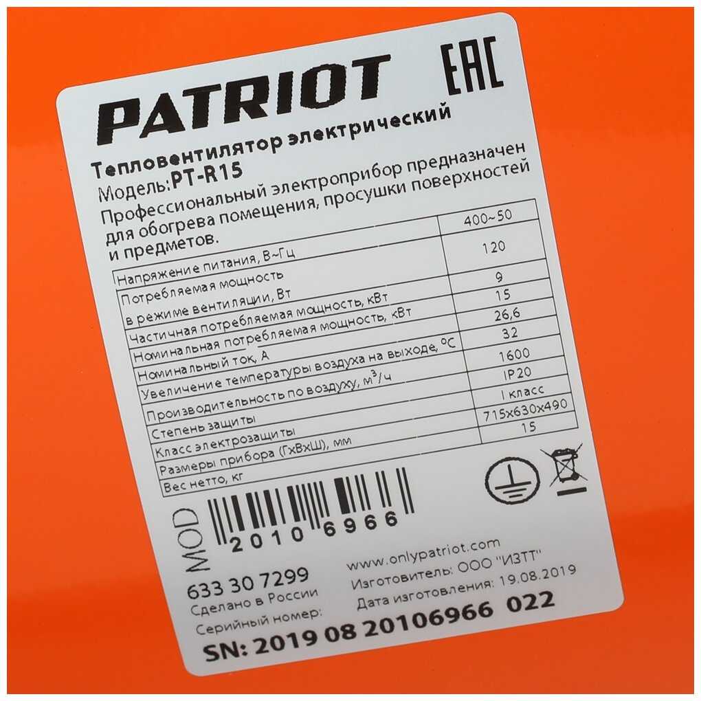Отзывы о Электрическая тепловая пушка PATRIOT PT-R 15