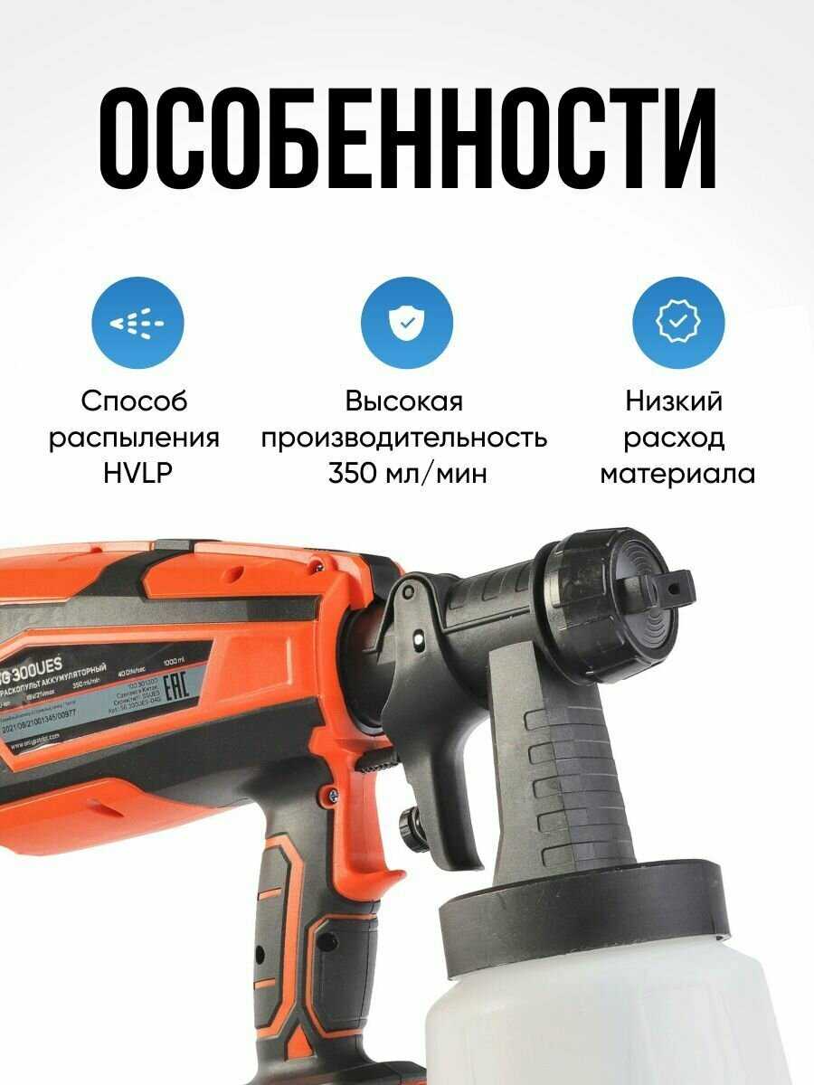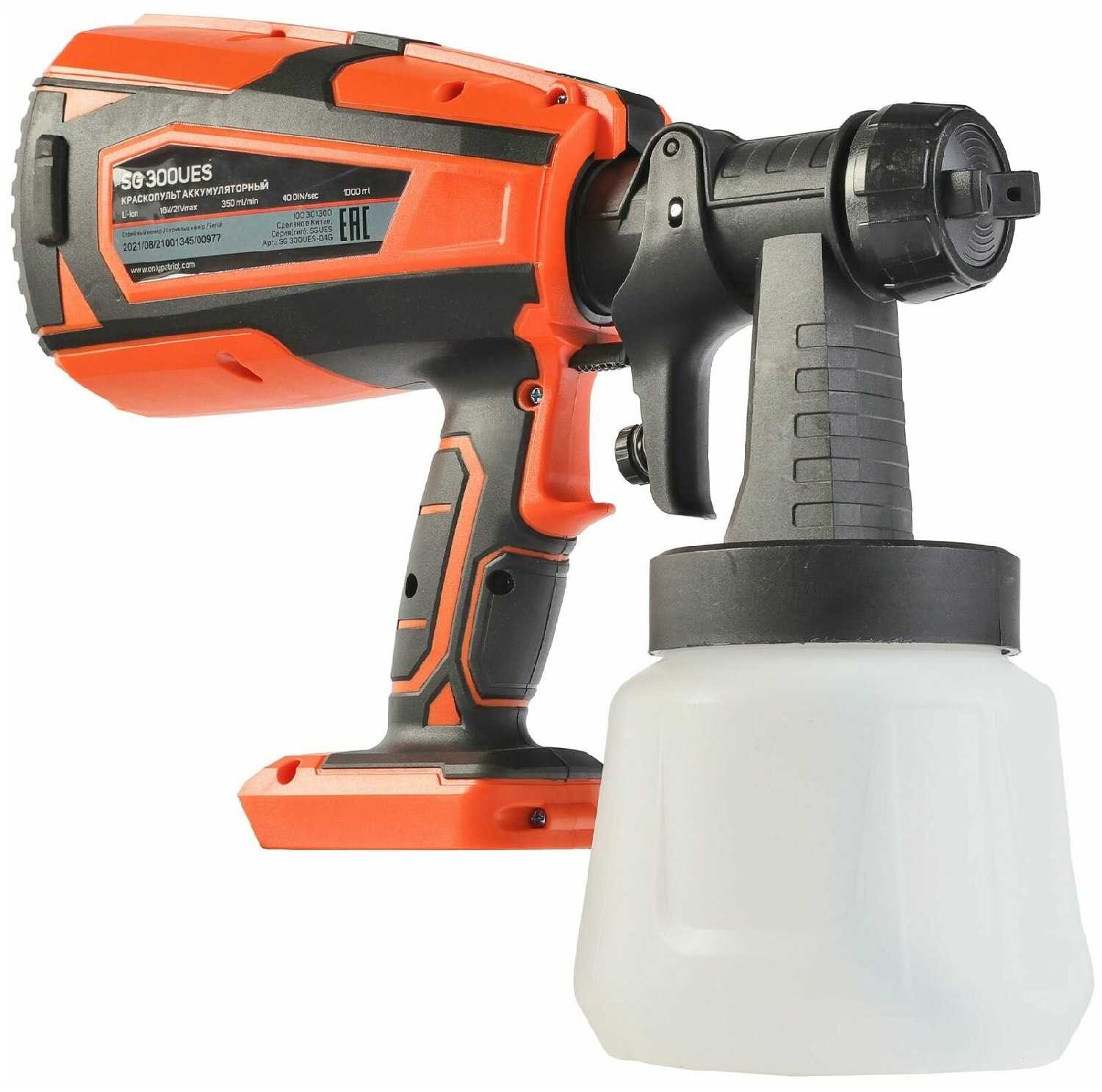 | Дополнительная информация : | Краскопульт аккумуляторный Patriot SG 300UES – это современный и мобильный инструмент для окраски, отличающийся простотой использования и высокой маневренностью благодаря отсутствию подключения к электросети. Особенностью товара является автономность — он работает на аккумуляторе, что позволяет окрашивать труднодоступные места без проводов. Также он обладает легким и эргономичным дизайном, что делает работу более комфортной и эффективной. |