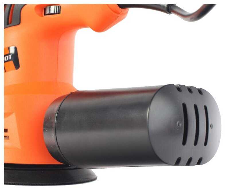 Работа эксцентриковой шлифовальной машины основана на орбитальных колебаниях подошвы с ходом в 2 мм от центра оси. Вращение самой подошвы вокруг своей оси является вторичным действием и при шлифовании и не является основным. У этой модели есть между подошвой и корпусом юбка притормаживающая вращение подошвы что делает комфортных постановку инструмента на обрабатываемую поверхность.
